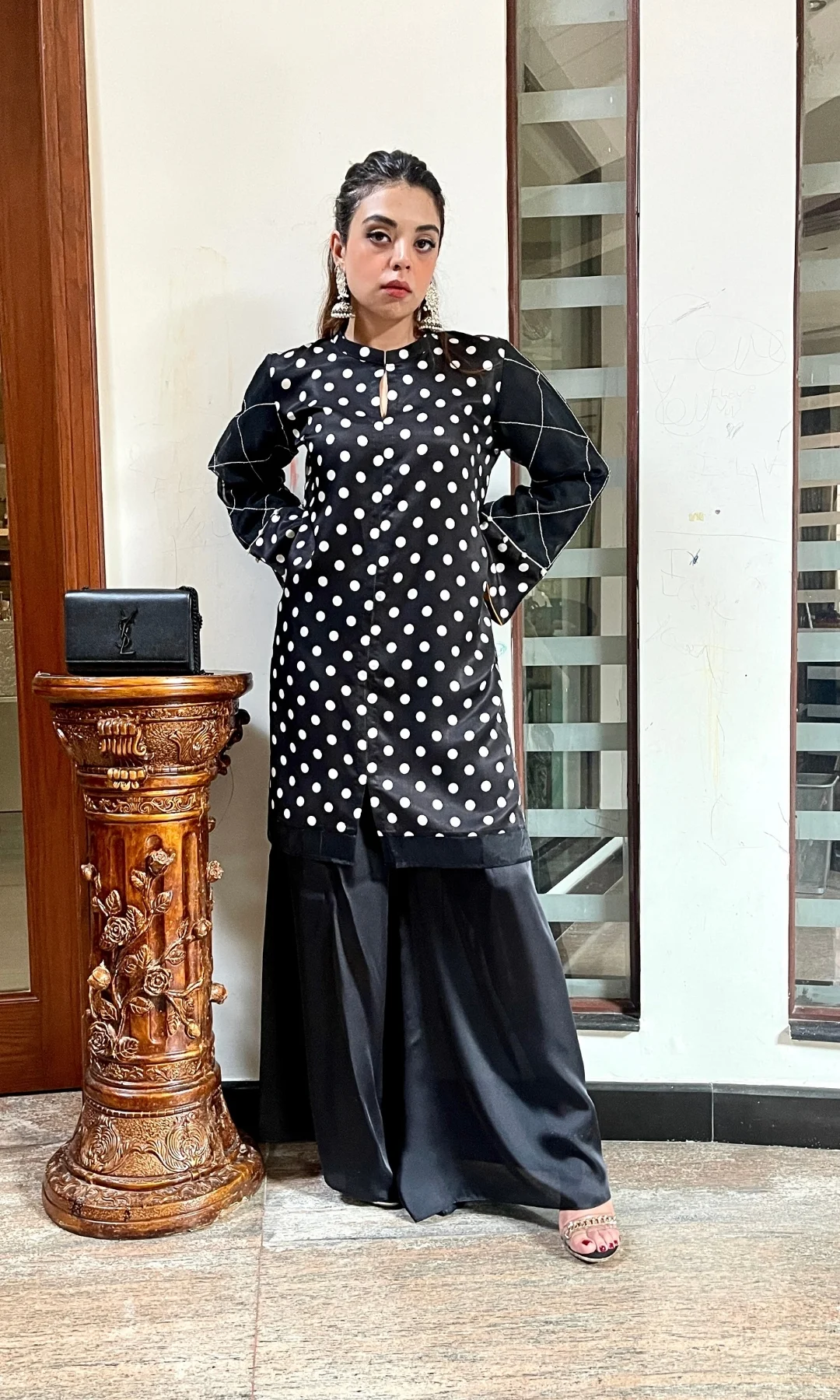 A regular fit Charmeuse silk shirt with stitching details on the sleeve and contrast in the sleeve.