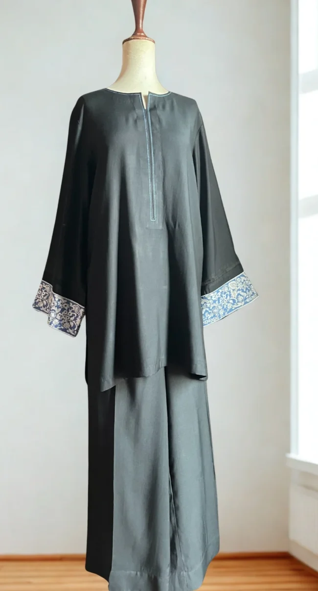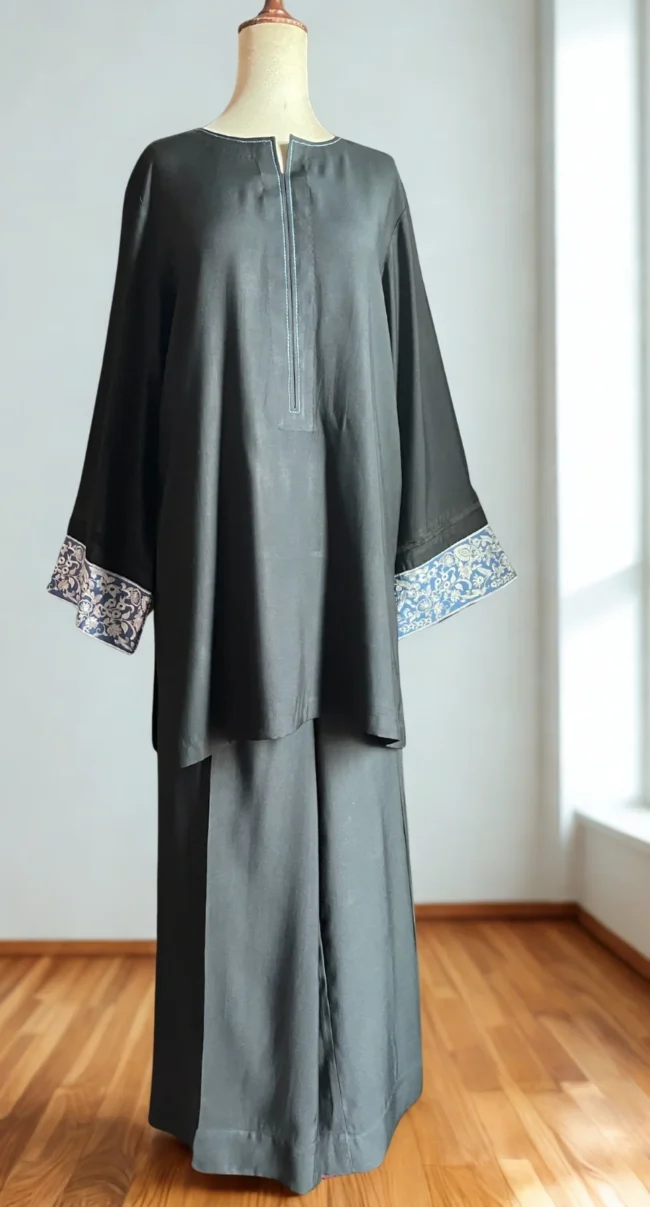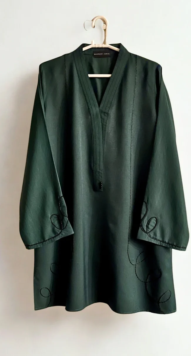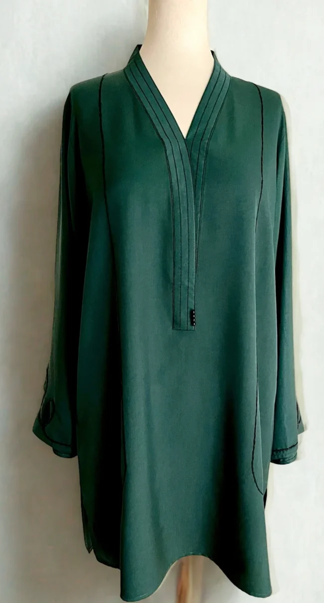 A Matte Twill fabric tailored to perfection with its stitching details around the neckline with pleat and loops, along with pintec details around the cuff.