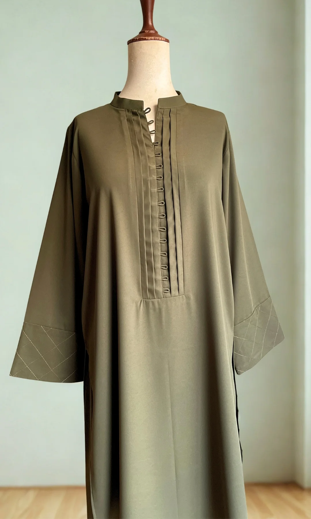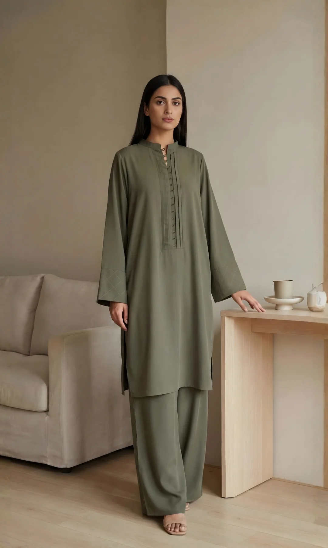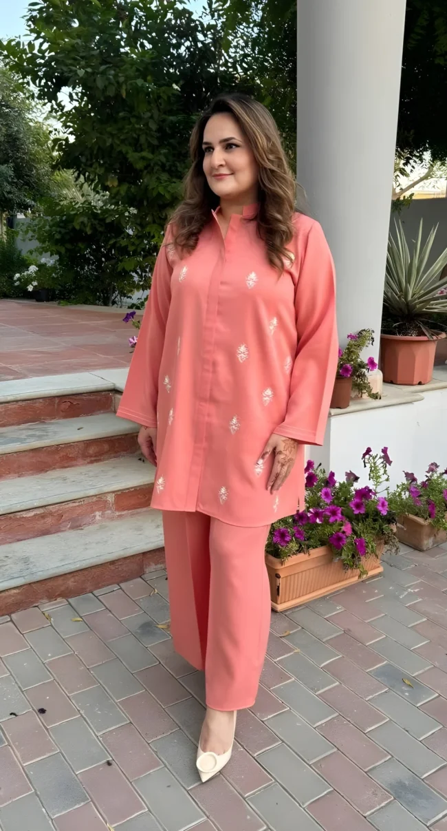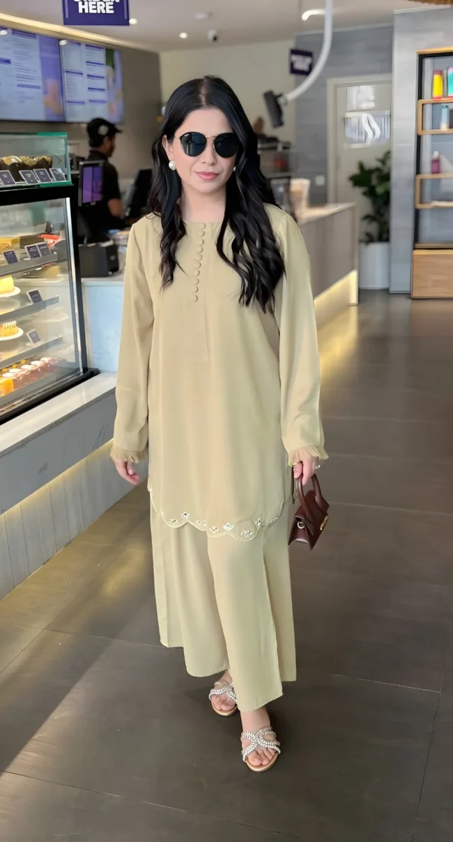 A Matte Twill fabric tailored to perfection with its stitching details around the neckline with pleat and loops, along with pintec details around the cuff.