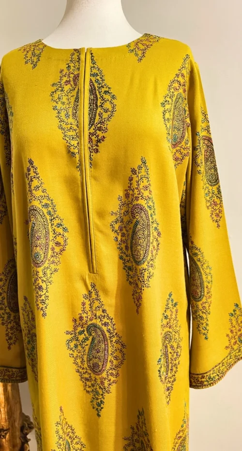 Paired with plain wide legged Trouser. Dupatta finished with facing on the pallu sides.
